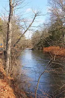 Huntington Creek is mostly surrounded by farms, pine-covered hills, and Huntington Mountain, although there are several villages and a few summer homes on the creek near Jonestown.[3] The area in the vicinity of the creek is sparsely inhabited and "rugged", with a 1921 book describing the watershed as "broken, mountainous country".[3][4] There are no major highways near the creek.[3]