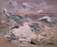 Hurricane is a 1944 oil painting by American artist John Marin, located in the Indianapolis Museum of Art, which is in Indianapolis, Indiana. He used quick brushstrokes and thickly daubed paint to depict a turbulent ocean such as he experienced near his summer home in Maine.[1]