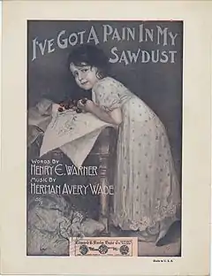 "I've Got a Pain in My Sawdust (The Plaint of the Little Bisque Doll)" was a popular song. The music was composed by Herman Avery Wade, and the lyrics were written by Henry Edward Warner. The song was originally copyrighted in 1909 by Joseph W. Stern & Co. with these rights bought for publication in the United States by Edward B. Marks Music Co. of New York in 1920. The sheet music lists the performance medium as piano, voice, and chords.
