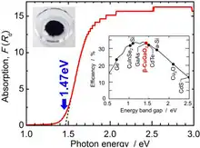 - ↑ Tinoco, T.; Rincón, C.; Quintero, M.; Pérez, G. S. N. (1991). "Phase Diagram and Optical Energy Gaps for CuInyGa1−ySe2 Alloys". Physica Status Solidi A. 124 (2): 427–434. Bibcode:1991PSSAR.124..427T. doi:10.1002/pssa.2211240206.