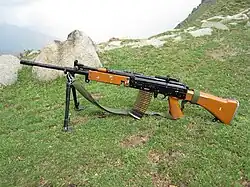 The INSAS, or Indian Small Arms System,[11][12] is a family of infantry arms consisting of an assault rifle and a light machine gun (LMG). These weapons were developed in India by the Armament Research and Development Establishment and manufactured by the Ordnance Factories Board at its various factories.[13] The INSAS assault rifle was the standard infantry weapon of the Indian Armed Forces for almost three decades.[1][14][13]