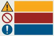 In addition to prescribing colours for safety signage, ISO 3864 also specifies how to layout the elements of the sign: A symbol and optional 'supplemental sign' which contains the supplementary text message.[1]