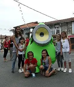Ibiltxo, the mascot of Ibilaldia'2012, with children from Trapagaran