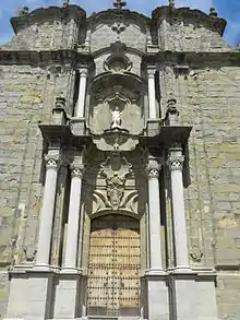 Iglesia de San Mateo (St. Matthew's Church) is the main church of Tarifa in the Province of Cadiz, Spain.[1] It was supposed to have been built in 1506 on the remains of an old mosque, although worship at the church has only been mentioned in documents since 1534, another date given for its inauguration.[2] Numerous alterations have been made to the church over the centuries. The main Baroque facade was designed by architect Torcuato Cayon de la Vega in 1774, and the work was completed four years later under the direction of maestro Carlos Hermida.[2] The bell tower has a square, robust base, and is topped with a fluted dome. The Capilla del Sagrario was restored in 1899, a magnificent dome on scallops that extends to the ground forming three semicircular chapels.