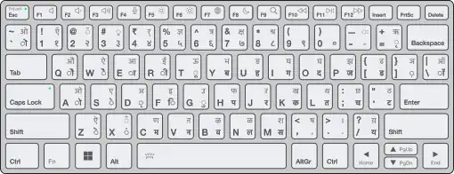 The Devanagari InScript laptop keyboard layout to type Hindi, Marathi and Sanskrit in Windows OS based computers