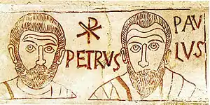 According to Roman Catholic Church tradition, Peter and Paul taught together in Rome and founded Christianity in that city. Eusebius cites Dionysius, Bishop of Corinth as saying, "They taught together in like manner in Italy, and suffered martyrdom at the same time."[30] Although this might indicate their reconciliation, there is no evidence that Peter ever went to Rome; moreover, in Epistle to the Romans 1:13-15 Paul wrote "I planned many times to come to you (but have been prevented from doing so until now)", and was "eager to preach the gospel [in Rome as well]", indicating that he had never been to the imperial capital before, and was planning to visit the church community in Rome that had by that time already been founded by other Christians, and no "Peter" is mentioned in this Epistle. In 2 Peter 3:16, Paul's letters are referred to as "scripture", which indicates the respect the writer had for Paul's apostolic authority.[31] However, most modern scholars regard the Second Epistle of Peter as written in Peter's name by another author.[32][33]