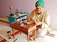 Inder Singh Kudrat (Hindi: इंदर सिंह कुदरत) is an Indian jeweller and Master Craftsman who specialised in kundan meenakari. An artisan of Jaipur he was also known as Swarnkar, or Sunar.