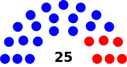 Following the 2019 elections, Democrats expanded their control of the council with a 20–5 majority.[14][15] This marked the first time in Indianapolis history that Democrats have held a supermajority on the council.[16] The clerk of the council is Yulonda Winfield.