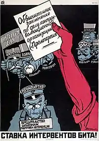A Soviet poster showing the 'Prompartiya' unmasked as spies and wreckers led by Western imperialists.