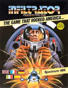 Infiltrator is a combat flight simulation game published in North America in 1986 by Mindscape and in Europe by U.S. Gold. It was developed for the Commodore 64, MS-DOS, Apple II, and Atari 8-bit family by Chris Gray Enterprises. Paragon Programming ported it to the Amstrad CPC and ZX Spectrum.