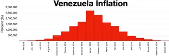 Hyperinflation in Venezuela is the currency instability in Venezuela that began in 2016 during the country's ongoing socioeconomic and political crisis.[3] Venezuela began experiencing continuous and uninterrupted inflation in 1983, with double-digit annual inflation rates. Inflation rates became the highest in the world by 2014 under Nicolás Maduro, and continued to increase in the following years, with inflation exceeding 1,000,000% by 2018. In comparison to previous hyperinflationary episodes, the ongoing hyperinflation crisis is more severe than those of Argentina, Bolivia, Brazil, Nicaragua, and Peru in the 1980s and 1990s, and that of Zimbabwe in the late-2000s.