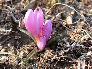 In spring various landscape formations are wonderfully decorated with [Potentilla arenaria], [Aurinia saxatilis], several species of violets, Corydalis solida, Scilla bifolia, Tulipa hypanica, Iris humilis and in summer – with the rainbow mosaic of the motley grass steppe. In autumn the slopes turn red with fruits of hawthorn (Crataegus) and dog rose (Rosa canina), with leaves of gatten-tree (Euonymus europaeus) and barberry (Berberis vulgaris); they turn motley with apricot and ash tree colour gamma. Great amount of medicinal plants also attracts. Majestic stone scatterings are adorned with mosses and lichens from early spring till late autumn.