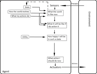 A rational utility-based agent chooses the action that maximizes the expected utility of the action outcomes - that is, what the agent expects to derive, on average, given the probabilities and utilities of each outcome. A utility-based agent has to model and keep track of its environment, tasks that have involved a great deal of research on perception, representation, reasoning, and learning.