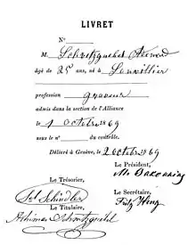 The International Alliance of Socialist Democracy was an organisation founded by Mikhail Bakunin along with 79 other members on October 28, 1868, as an organisation within the International Workingmen's Association (IWA).[1] The establishment of the Alliance as a section of the IWA was not accepted by the general council of the IWA because, according to the IWA statutes, international organisations were not allowed to join, since the IWA already fulfilled the role of an international organisation. The Alliance dissolved shortly afterwards and the former members instead joined their respective national sections of the IWA.