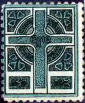 Between 1907 and 1916, Sinn Féin, one of the nationalist organisations of the time, issued propaganda labels symbolising Irish nationhood. Their use as stamps was forbidden by Post Office regulations.[7]:13–20 The first design was a Celtic Cross, similar to one later adopted for two definitive stamps of 1923, and the second depicts a female figure and harp in an oval frame. In 1912, labels inscribed "Imperial Union" appeared, with a design of a larger harp and female figure. These labels, expressing unionist sentiments, are believed to have been printed in Manchester as a counter to the Sinn Féin labels. After the Home Rule Bill for Ireland was passed in parliament, an Irish Republican body issued labels in 1916 with the portraits of three nationalist heroes known as The Manchester Martyrs against an Irish tricolour background. Forgeries of these labels are common.[7]:13–20 Following the Easter Rising of 1916, American sympathisers printed eight ERIE PUIST labels showing portraits of seven prominent leaders and a harp and shamrock label. The misspelling ERIE for ÉIRE could have been because of hasty preparation.[7]:13–20
