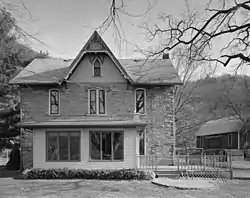The farmhouse was built in 1885, and is a 2+12-story, L-shaped stone dwellingwhich was designed in the Victorian Gothic style. The house is built from sandstone in hues of purple and gray. Also located on the property are a contributing three-story bank barn (1905), a stone lime kiln, and a well (1886).[2]