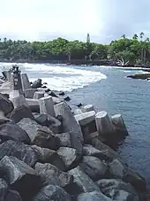 Isaac Hale Beach Park is an oceanfront park on Pohoiki Bay in the Puna district of the Big Island of Hawaii, United States. Known for its strong currents and large waves, the bay was part of a fishing village for centuries. It was one of a few places on the southeastern shore of Hawaii for ocean access.[1] The park used to be known for good snorkeling, the 2018 lower Puna eruption covered most of the coral and safer swimming area. The park was expanded and modernized in 2006.[2]
