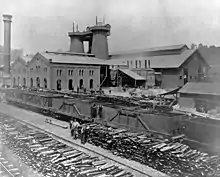 The furnaces in 1880, showing rail cars connecting to the W.P.R.R.
