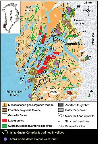 2. 1 2 3 4 Nutman, Allen P.; Friend, Clark R.L.; Horie, Kenji; Hidaka, Hiroshi (2007). The Itsaq Gneiss Complex of Southern West Greenland and the Construction of Eorarchean Crust at Convergent Plate Boundaries (PDF). Developments in Precambrian Geology. Vol. 15. pp. 187–218. doi:10.1016/S0166-2635(07)15033-7. ISBN 9780444528100. Retrieved 3 September 2016.