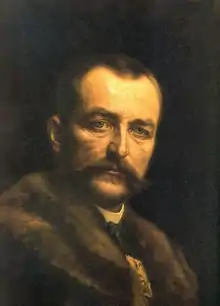 Count István Imre Lajos Pál Tisza de Borosjenő et Szeged[lower-alpha 1] (22 April 1861 – 31 October 1918) was a politician who served as prime minister of Hungary from 1903 to 1905 and from 1913 until 1917. He was also a political scientist, international lawyer, macroeconomist, member of the Hungarian Academy of Sciences and champion duelist. The outbreak of World War One defined his second term as prime minister. He was killed by leftist revolutionaries on 31 October 1918 during the Aster Revolution, the day Hungary declared its independence, dissolving the Dual Monarchy or Austro-Hungarian Empire.[1] Tisza was the most zealous adherent of the Dual Monarchy (the partnership with Austria) among the Hungarian political leaders[2] and pleaded for consensus between liberals and conservatives.[3] As a Member of the Imperial Council[lower-alpha 2] since 1887, he came to fear a political impasse in the conflict between the unyielding temper of the Emperor and the revolutionary spirit of the extremists. Tisza stubbornly opposed on principle any governmental redistribution of agricultural land breaking up the large landed estates. He opposed extending suffrage to active duty soldiers;[4] before 1918 only 10% of the Hungarian population could vote and hold public office. He supported industrial reforms to modernize Hungary, and opposed Anti-Semitism as economically counterproductive. Tisza was unpopular among ethnic Hungarian voters[5] and therefore - similarly to his father Kálmán Tisza - he drew most of his votes from ethnic minorities during the parliamentary elections.[6]