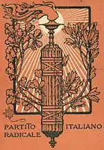 The Italian Radical Party (Italian: Partito Radicale Italiano), also known as the Historical Radical Party (Partito Radicale storico), was a political party in Italy. Heir of the Historical Far Left and representative of Italy's political left in its beginning, with the rise of the Italian Socialist Party, it came to represent centre-left politics. The party was associated with classical radicalism,[2] republicanism, secularism, social liberalism, and anti-clericalism.[3]