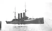 Her propulsion system consisted of two vertical triple-expansion steam engines, each driving a screw propeller. Steam for the engines was provided by twenty-eight coal-fired Belleville boilers that were vented into three funnels. The ship's propulsion system was rated at 19,299 indicated horsepower (14,391 kW) and provided a top speed of 20.8 knots (38.5 km/h; 23.9 mph) and a range of approximately 10,000 nautical miles (19,000 km; 12,000 mi) at 10 knots (19 km/h; 12 mph).[1][2]