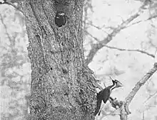 A female ivory-billed woodpecker returning to the nest, April 1935, from the Singer tract expedition of Allen, Kellogg, Tanner, and Sutton