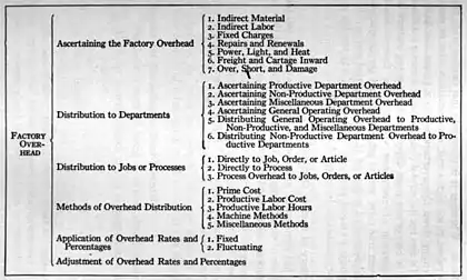 This article incorporates public domain material from: Nicholson (1909) Factory Organization and Costs; L. G. (1909); Stanley E. Howard (1919) and some other PD sources listed.