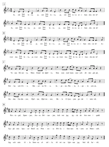 Ex B: "Ja, må han (hon) leva" as sung lately. ⓘ