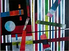 Mancino's work in abstract expressionism and suprematism is mainly based on artworks of earlier abstract expressionists from the early and middle of the 20th century. His earliest work comprised classical landscapes and still life compositions but his later work focused on the art theories of abstract painters like Wassily Kandinsky, Mark Rothko and Jackson Pollock.[1] The change helped him establish his own artistic style within abstract expressionism. Since then he has followed the New York School of abstract expressionism . The technical elements of his art theory show the balanced application of either precise or raw objects relations. The communicative compositions are systemically related with impulsive color surroundings; the artistic application of his works are also characterized by strong vibrant colorization and raw geometrical shape composition or structuring. The use of geometrical shapes reflect Suprematism, although he preferred to call his style "Fragmented Geometrical Abstract."