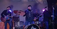 After graduating from college, Jackslacks honed his chops as a founding member in both Forbidden Pigs and Hot Rod Lincoln, popular groups in the early San Diego roots-rock scene, which also included Beat Farmers, The Paladins, and Mojo Nixon.[2][3] At about the same time, childhood elementary school chum, Tommy Byrnes joined neo rockabilly band Stray Cats on second guitar and backing vocals for a European and US tour concluding at the New Orleans World's Fair, giving Jackslacks the inside track to both the exploding local and increasingly popular national rockabilly revival scenes. Jackslacks CD "Rock and Roll Dinosaur" was produced by Stray Cats slap bassist Lee Rocker and includes Byrnes on guitar, before he[4] went on to play with Joan Jett and the Blackhearts and Rock and Roll Hall of Fame inductee Billy Joel.[5] A huge fan of Sam Phillips Sun Records, Jackslacks arranged the Sun inspired original song "Bank Account's Too Small" on the Hot Rod Lincoln CD "Blue Cafe" which won best local recording at the San Diego Music Awards[6] and whose title track was written for the band by Topcat Brian Setzer.