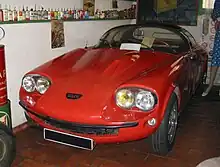 The following year founder André Morin decided to develop a small sports car that was also based on the Renault 4 chassis and hired Durand to design the body.[9] For the Sovam "Voiture de Sport" (VdS) Durand produced a compact coupé body with quad headlamps, a steeply raked windscreen, and a removable roof panel.[4]:1479 The car was presented at the 1965 Paris Auto Show and generated enough interest that Morin decided to put the car into production. Performance with the original 845 cc engine was disappointing, so Sovam soon made an 1108 cc engine available. A new hardtop model was released in 1967 with 2+2 seating, rectangular headlamps and a 1300 cc Gordini-tuned engine.[10] Although over 100 Sovam sports cars were sold the venture was never profitable and Sovam stopped production in 1969.