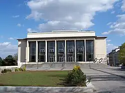 Janáček Theatre (Czech: Janáčkovo divadlo) is an opera house in the city of Brno, Czech Republic. It is the largest of the three theatres serving the National Theatre Brno ("NdB") opera and ballet company, the others being the Mahen and the Reduta. It was built starting in 1960 after decades of delay and finally opened in October 1965,[1] since when it has premiered some twenty operas and ballets.[2] A major renovation was completed in 2018. The building's façade is north-facing, away from the city center and towards the nearby house of its namesake composer, who is grandly memorialized on the adjacent landscaped green.