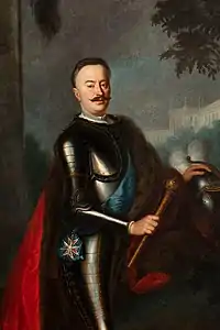 Count Jan Klemens Branicki (also known as Jan Kazimierz Branicki; 21 September 1689 – 9 October 1771) was a Polish nobleman, magnate and Hetman, Field Crown Hetman of the Polish–Lithuanian Commonwealth between 1735 and 1752, and Great Crown Hetman between 1752 and 1771. One of the wealthiest Polish magnates in the 18th century, owner of 12 towns, 257 villages and 17 palaces. He was the last male representative of the Branicki family.