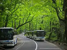 Buses on National Route 102 near the Oirase River