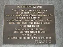 Jean-Baptiste Carrier (French pronunciation: [ʒɑ̃ batist kaʁje]; 16 March 1756 – 16 December 1794) was a French Revolutionary and politician most notable for his actions in the War in the Vendée during the Reign of Terror. While under orders to suppress a Royalist counter-revolution, he commanded the execution of 4,000 civilians, mainly priests, women and children in Nantes, some by drowning in the river Loire, which Carrier described as "the National Bathtub."[2] After the fall of the Robespierre government, Carrier was tried for war crimes by the Revolutionary Tribunal, found guilty, and executed.