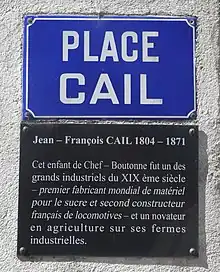 The main square of his home town Chef-Boutonne is named Place Cail. A street in Paris is also named after him: Rue Cail.