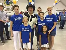 Jason Kenney with the Watson's children during Kenney's 2017 Campaign