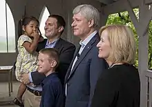 Steven and Laureen Harper with Jeff Watson and Watson's children, adopted daughter Beatrice and eldest son, Elijah.
