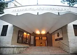 18°55′39″N 72°49′54″E / 18.9274559°N 72.831703°EJehangir Art Gallery is an art gallery in Mumbai (India). It was founded by Sir Cowasji Jehangir at the urging of K. K. Hebbar and Homi Bhabha. It was built in 1952. Managed by the Committee of Management, the entire cost of this mansion was donated by Cowasji Jehangir. This gallery is situated at Kala Ghoda, behind the Prince of Wales Museum, in South Mumbai near the Gateway of India, and has four exhibition halls. The gallery was designed by G.M.Bhuta for G.M. Bhuta & Associates.[1]. The gallery closed for 11 months as a part of the COVID-19 lockdown in India and was partially re-opened on 16 February 2021.[2]