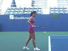 At Wimbledon, Janković injured her knee during her third-round match against Caroline Wozniacki.[15] Although she won that match, it visibly hindered her during her fourth-round loss to Tamarine Tanasugarn. Janković would have become the world no. 1 had she reached the semifinals of the tournament.[16] However, she lost to Tamarine Tanasugarn in the fourth round. Janković squandered two further opportunities to immediately take the world no. 1 position with losses in the semifinals of the East West Bank Classic in Los Angeles[17] to Dinara Safina and the quarterfinals of the Rogers Cup in Montreal, to Dominika Cibulková. Janković did eventually replace Ivanovic as the world No. 1 on 11 August 2008.[18] She was the 18th woman to have been ranked world No. 1 by the Women's Tennis Association, but the first woman to have done so without ever having reached a Grand Slam final and only the third woman (the others being Amélie Mauresmo and Kim Clijsters) to have become world No. 1 without first winning a Grand Slam title.[19][20]