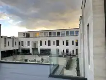 The long but narrow third quadrangle adjoins Ship Street, on the north of the site and to the west of the garden of the principal's lodgings, where the college has owned some land since its foundation. In the 18th century, this was home to the college stables. A fire in 1904 led to the demolition of the stables and the gateway to Ship Street.[67] Replacement buildings adjoining Ship Street, effectively creating a third quadrangle for the college, were constructed between 1906 and 1908.[68] It contained the college's science laboratories (now closed) and a new gate-tower, as well as further living accommodation and a library for students, known as the Meyricke Library, after a major donor – there had been an undergraduate library in the second quadrangle since 1865, known as the Meyricke Library from 1882 onwards.[67][68]
