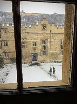 Snow in Jesus College's second quadrangle (21st century). The second quadrangle was constructed between about 1640 and about 1713