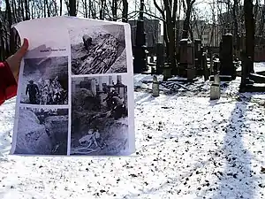 Bródno Jewish Cemetery was once much bigger than the earlier cemetery and served both the Jews of the right-bank borough of Praga and poorer Jews of other boroughs of the city of Warsaw.[2] After the Okopowa Street cemetery became overcrowded, the Praga cemetery was intended as the main Jewish cemetery. However, after the German occupation of Poland in 1939 and the start of the Holocaust, most of it was demolished and the headstones were used as street pavement. After the war the remaining tombstones were recovered from various towns in Poland and moved back to the cemetery. Currently it is inactive and serves as a monument only.