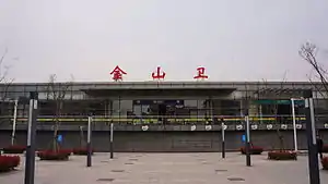 Jinshanwei (simplified Chinese: 金山卫; traditional Chinese: 金山衛; pinyin: Jīnshānwèi) is a railway station on the Jinshan railway of the Shanghai Suburban Railway located in Jinshan District, Shanghai. It opened for intercity passenger service on September 28, 2012.[1] Jinshanwei currently has four platforms. The station serves both express and local service trains.[2] In April 2013, a Park and ride scheme was introduced, encouraging commuters to park their cars at the station and continue their travels by train to downtown Shanghai.[3]