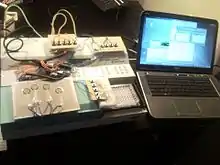While at the University of Chicago Zayner created a musical instrument, the Chromochord, which stimulates light-, oxygen-, and voltage-sensing proteins and translates their reactions into music.[26][27] Together with composer Francisco Castillo Trigueros, Zayner received a grant from the university to compose music and create audio visual art installations using the work.[28] Zayner, gave a musical performance using the Chromochord at NY MoMA PS1.[29]