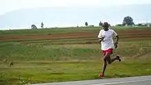 Jobo Khatoane doing hill sprints as part of marathon training in Maseru, Lesotho.