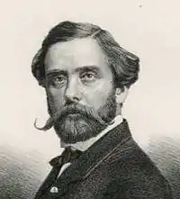Although Drottning Kristina och Monaldeschi was popular, Höckert rose to fame in 1855 with his painting Gudstjänst i Lövmokks fjällkapell (English: Worship service in Lövmokk's fell chapel).[4] It was inspired by a sketch Höckert had made while traveling in Lapland, and he thought it would draw attention to itself.[3] The painting was put on display at the 1855 World's Fair in Paris, and Höckert was awarded with a gold medal for it.[2] French critics characterized it as a piece of French art, commenting that Höckert was most likely influenced by Eugène Delacroix and Thomas Couture.[5] The painting was then bought by Napoleon III of France[4] and was given to the art museum in Lille.[2] Its current home is the National Museum of Arts in Sweden.[4] At this time, Höckert became recognized as one of Sweden's foremost figure painters.[2]