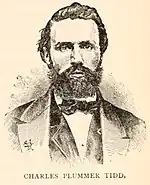 - Charles Plummer Tidd, a "lumberman" from Maine,[13]: 24 had been a farmer in Kansas,[104] where he met Brown.[49]: 345 He died during the Civil War, 1862. Another reference says he was from Worcester County, Massachusetts. After enlisting in the Union Army, while his regiment was stationed at Roanoke Island, North Carolina, he died of a fever; his remains are buried at New Bern, North Carolina.[104][105] Owen Brown, upset at the reaction to his comments on Tidd in his interview published in The Atlantic,[49] said in a reply letter: "[M]y impressions of Tidd are that he was a very warm friend, generally of peaceful disposition, true, and devoted to his ideas of rights and moral principle. He was firm and persistent in what he undertook, somewhat inclined to be arbitrary, and with a temper not always under perfect control. As a whole, he stands far above the average of men. I hold for him a warm friendship."[106]