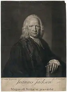 This article incorporates text from a publication now in the public domain: Gordon, Alexander (1892). "Jackson, John (1686-1763)". In Lee, Sidney (ed.). Dictionary of National Biography. Vol. 29. London: Smith, Elder & Co.